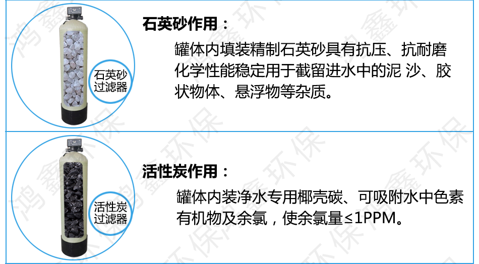 1:砂過(guò)濾+炭過(guò)濾+軟化過(guò)濾=軟化水